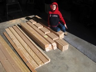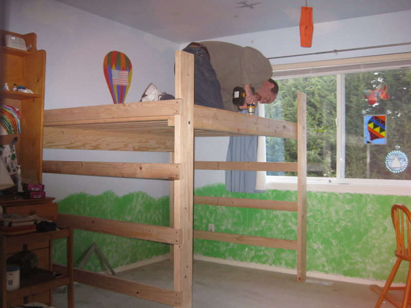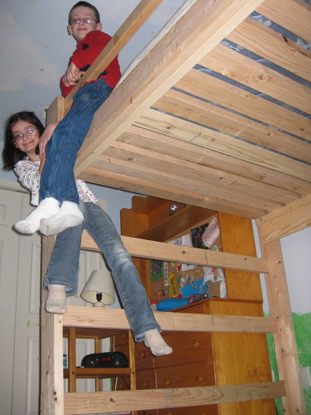Well, this weekend Jenny and I decided that we need to move some of Kyler's toys from Christmas that have been hanging out in our dining room. The only way to put them into his room was to somehow make more space in his room. Jenny had been thinking about making a raised loft bed which would give Kyler another 20% of floor space in his room. Jenny did a lot of searching and in the end we agreed to get the plans for the loft bed at