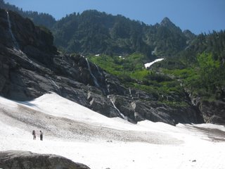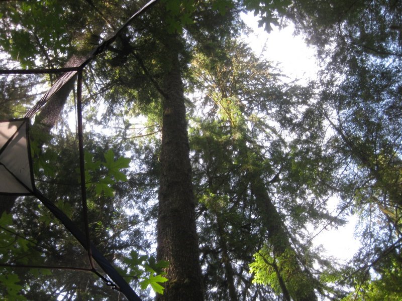 This is the view straight up from our tent. It was a warm evening, although it did finally cool off. We had a relaxing morning, made a few more cinnamon sugar slugs, and headed out around the whole Mountain Loop Highway. Didn't know that 15 miles of it were gravel, but it was fairly easy going. Made it back in time to clean up and go to our friends' house tonight for fireworks. What a great day!